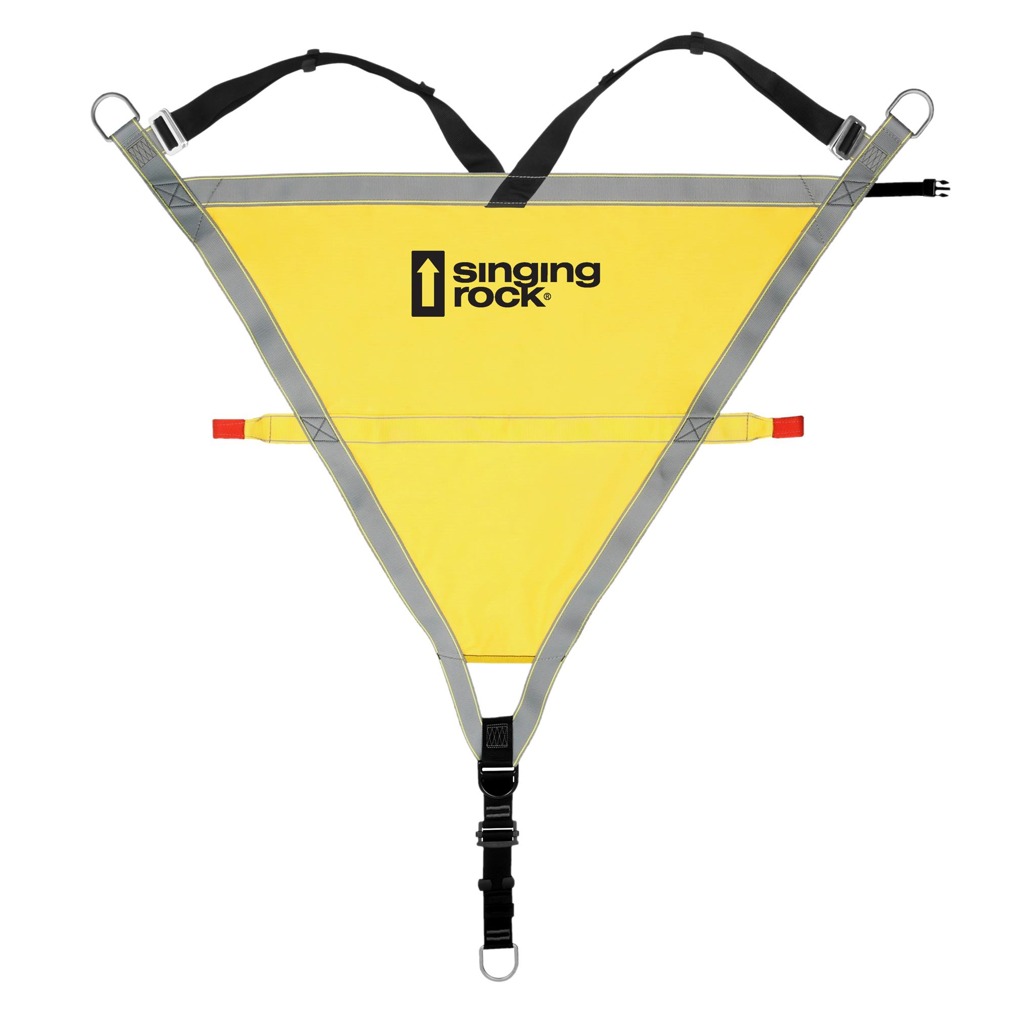 - Cuenta con correas para los hombros para poder rescatar a una persona de un telesilla o un teleférico correas especiales para los hombros para fijar mejor a una persona en el triángulo de evacuación, las correas son de distinto color para una mejor gestión de la sujeción, la hebilla de plástico en el pecho para facilitar la colocación del triángulo, puntos de sujeción de acero duradero y correas ajustables en la entrepierna.