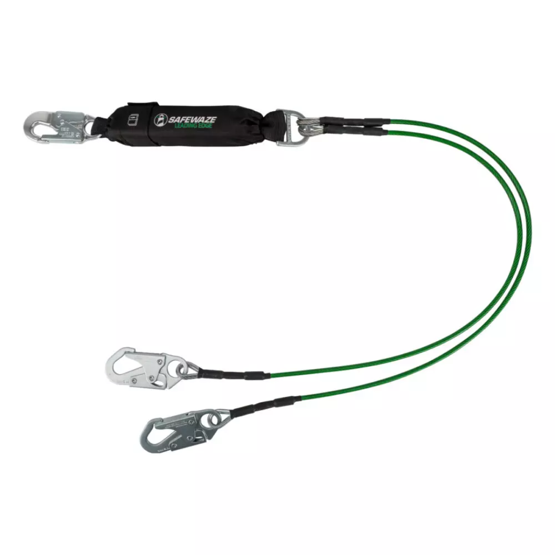 - La eslinga con absorbedor de energía Leading Edge de 1,83 m (6′) ofrece protección en los bordes a usuarios de cualquier categoría de peso, trabajando en alturas de caída libre de 1,83 m (6′) y 3,66 m (12′).